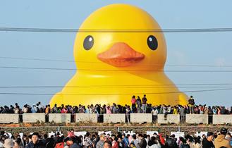 大黃鴨昨起在桃園地景廣場藝術(shù)節(jié)亮相,三大主題展區(qū)涌入12萬人次(圖片來自臺媒)