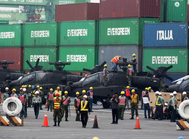 臺灣共向美國購買30架AH-64E阿帕奇攻擊直升機,首批6架日前運抵高雄港。(網絡圖)