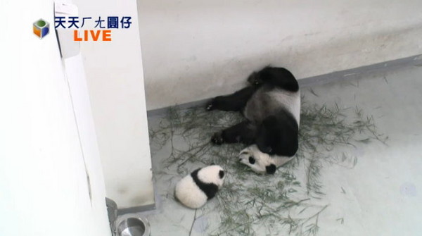 臺北市立動物園直播熊貓“圓仔”畫面。