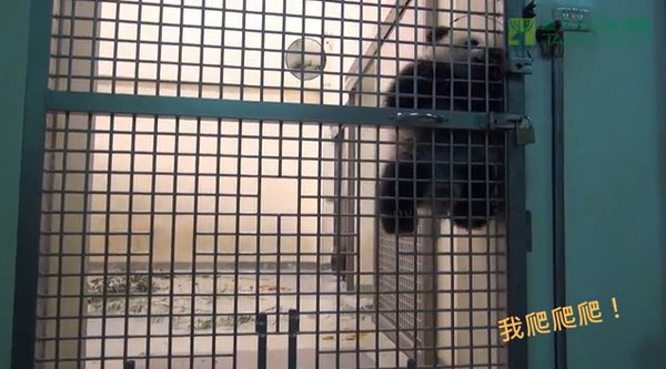 胖寶寶圓仔體重逼近11公斤,調(diào)皮的牠近來(lái)不聽(tīng)話,老愛(ài)“趴趴走”、找樂(lè)子,昨天還趁著媽咪不注意時(shí),上演攀爬鐵網(wǎng),大秀“蜘蛛熊”英姿,不料耐心不足,只爬了8秒鐘就宣告放棄。