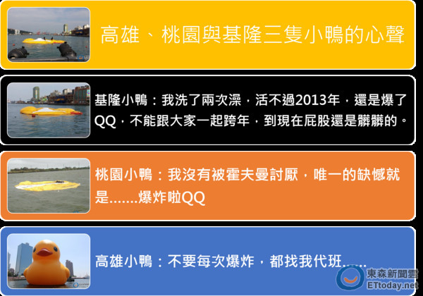 高雄、桃園、基隆3只小鴨心聲。(臺(tái)媒圖)