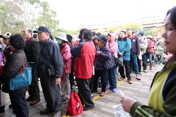 動物園門口清晨5、6時就出現(xiàn)搶看“圓仔”的頭香客,每個人都是全副武裝,包得緊緊就為了看“圓仔”。截至動物園9時開園前,排隊人龍已經(jīng)延伸至捷運動物園站,約有500、600人。