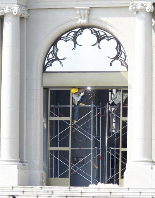 馬英九辦公室遭撞毀的防彈門(mén),已進(jìn)行重新安裝。(圖片來(lái)自臺(tái)媒)