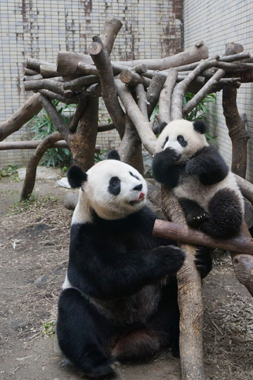 大貓熊寶寶“圓仔”跟媽媽一起到戶外走春。來源:臺(tái)北市動(dòng)物園