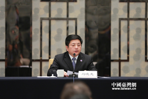 2月11日下午,國臺辦主任張志軍與臺灣陸委會負責人王郁琦在南京紫金山莊舉行首次正式會面。國臺辦新聞局局長馬曉光介紹“張王會”情況:雙方達成積極共識。(中國臺灣網 田云鵬 攝)