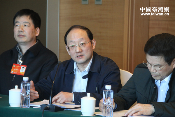 3月4日,全國政協十二屆二次會議首次展開分組討論,臺盟中央的委員針對昨日的政協常委會工作報告和提案工作情況報告展開討論。(中國臺灣網 張潔 攝)