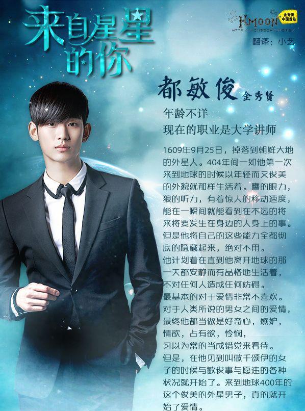 《來自星星的你》男主角“都敏俊”資料。(圖片取自網絡)
