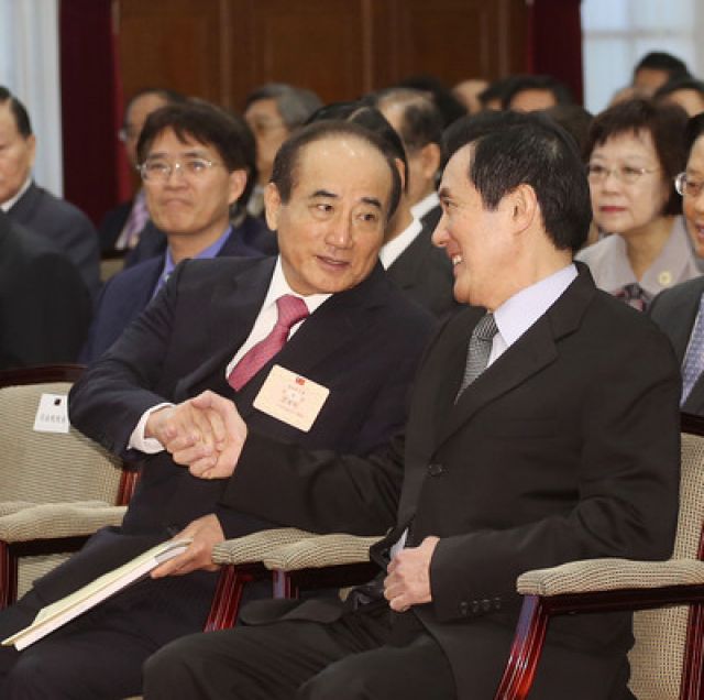 3月17日王金平生日,馬英九(前右)與王金平(前左)握手致意。(圖片來自臺媒)