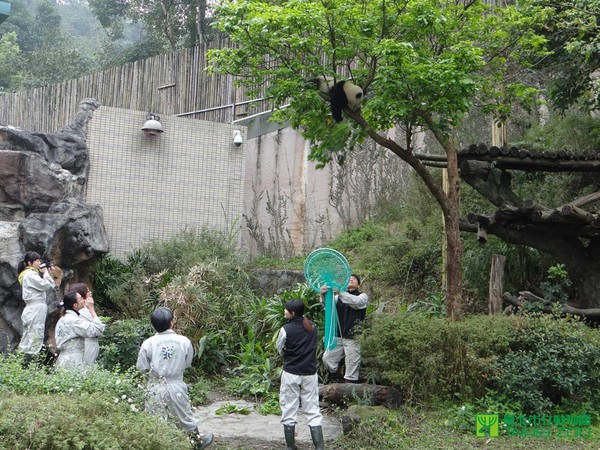 曹先紹說,圓仔昨天下午4時起,就先與媽媽圓圓到戶外展場暖身,看到樹就高興地沖過去,以超乎保育員想象的速度往上攀爬,期間還因為驚擾蟻窩,嘗到被螞蟻修理的滋味。