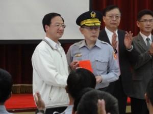 江宜樺今日下午慰問執(zhí)勤警察,并發(fā)加菜金,幫警察加油打氣。(圖片來自臺媒)