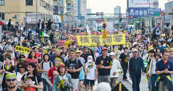 反核四游行27日占領忠孝西路。(臺媒圖)