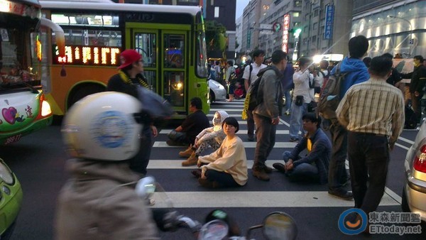 反核民眾29日傍晚癱瘓忠孝東路交通,引發(fā)用路人不滿。(圖片來(lái)源:臺(tái)灣東森新聞)