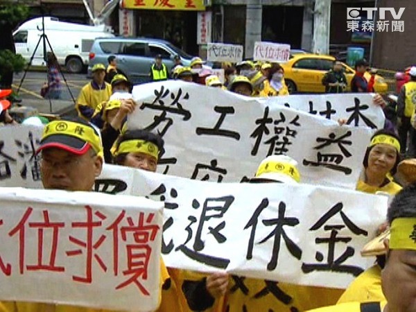 桃園縣總工會(huì)赴臺(tái)“勞動(dòng)部”抗議,要求縮短工時(shí)。(圖片來(lái)自臺(tái)媒)