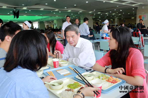 中國臺灣網(wǎng)5月15日杭州消息 中共中央臺辦、國務院臺辦主任張志軍15日中午來到浙江大學,與在這里就讀的臺灣學生一同排隊打飯,并在食堂餐敘。(中國臺灣網(wǎng)記者 于斯文)