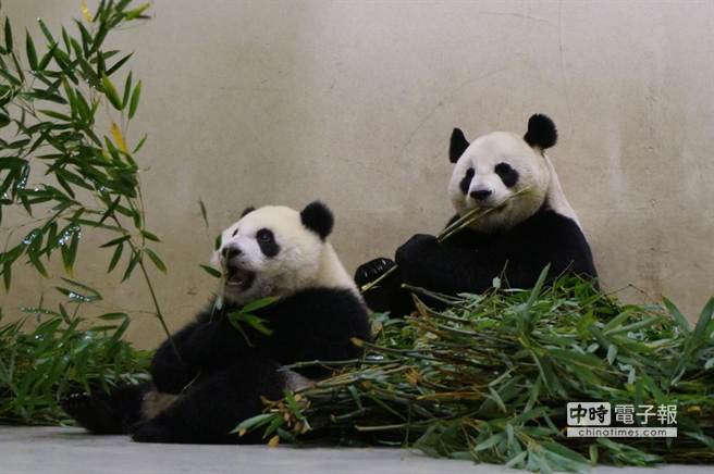 圓仔今早與媽媽圓圓共進早餐,吃起竹葉有模有樣的。(圖片來自臺媒)