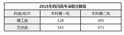 6月22日下午,四川省2015年普通高校招生考試錄取控制分數線確定。文科一本543分,較去年降低8分;理科一本528分,較去年降低12分。