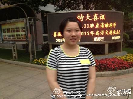 2015年江蘇高考文科狀元花落南通。 南通中學(xué)高三(11)班袁清晗同學(xué)以418分成為江蘇文科狀元。 2015年山東高考理科狀元出自山東嘉祥一中。 山東嘉祥一中賈晶同學(xué)以726分裸分加5分省級(jí)三好學(xué)生加分,總分731分成為山東理科狀元。