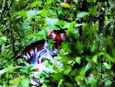 這是周正龍用數碼相機拍攝的第24張野生華南虎照片,也是整組照片中成像最好的一張(局部裁剪圖)