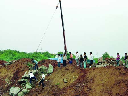 恐龍骨化石是6月23日在株洲市天元區蓮花小區二期工地發現的,當時一塊重約3噸的石頭被炸開后,石頭呈骨狀。6月27日上午,株洲市文物局局長席道合帶領工作人員趕至工地調查,對怪石取樣鑒定,并將相關資料圖片送中科院古脊椎動物研究所鑒定。