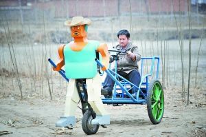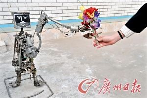 “17歲時,我就做出第一個機器人,我管它叫“吳老大”,后來的就都叫“吳老幾”了,現(xiàn)在年紀最小的是吳老三十四!”做吳老大時,吳玉祿花了整整一年時間。每個機器人都有自己的絕活,“吳老大”會走正步;“吳老三”可以攀巖;“吳老五”能給客人點煙,端茶倒水;“吳老七”是一個“六腳怪”,可以在復雜的路面上行走自如;“吳老八”能蹦能跳,還能翻跟頭;而他最喜歡的就是“吳老二十五”,它不但會拉車,而且只要一拉開關就會說話:“大家好,我是拉洋車的機器人,吳玉祿是我爹,現(xiàn)在我拉我爹去逛街,謝謝。”按另一個開關,它就能大步向前邁去。