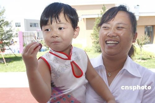 7月2日,中國第10家SOS兒童村――北京SOS兒童村正式開村,主題為“同一個世界,同一個家園”。開村儀式上,奧地利駐華使館、安利集團(tuán)等六單位共向兒童村捐贈126萬元人民幣。目前,該兒童村共有14名兒童,最大的10歲,最小的10個月。3歲的張文靜成為首位入住的小“主人”。張文靜來自北京東城區(qū)一個低保家庭,因家庭困難無力撫養(yǎng),自愿將其送到兒童村代養(yǎng)。 中新社發(fā) 鄭雄增 攝
