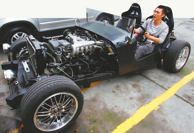 “半年前我一個好朋友興趣大發,準備自己造車,首先弄個車架、發動機和手動變速箱……”昨日,網名為“圣之夜”的網友在四川某汽車論壇上發帖稱,他的朋友制作了成都首輛DIY(自己動手)漂移車。該網友上傳了一組反映該汽車組裝全過程的照片。此外,還有一段該車不久前在金港賽道上玩漂移的視頻。從照片中記者看到,這是一輛酷似老爺車的黑色敞篷車,汽車引擎、油箱、車座等全部裸露在外,車座是賽車椅子,車座兩旁沒有安裝車門,真可謂全敞篷。