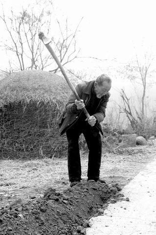 見到劉志光老人時,老人正揮鎬在自家房前挖自來水管道。原來,村里對原有老化的自來水管道進行改造,老人閑不住就自己干起來。如果不是同行的人介紹,誰也不敢把他當(dāng)成年逾百歲的老人。