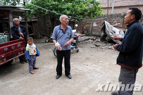 5月12日,趙作海和妹夫(右一)一起商量事情。