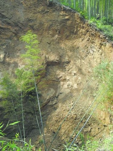 在目前所現的這些天坑中,硐底鎮石埡村一天坑坑口直徑有60米左右,深度達到30多米,成為此次地面塌陷中形成的最大天坑。據硐底鎮黨委書記林興權介紹,從宜賓興文經江安紅橋前往長寧龍頭、硐底一帶,屬于喀斯特地貌,目前有大大小小的天坑80多個,而硐底鎮一帶目前就占了40多個。