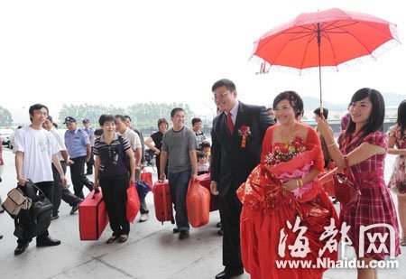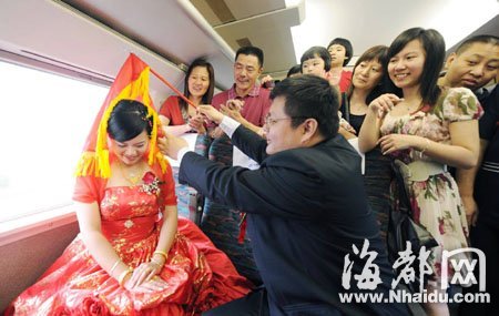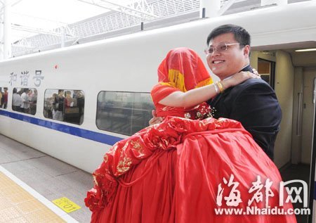 福州小伙坐動車迎娶新娘 乃全國首例