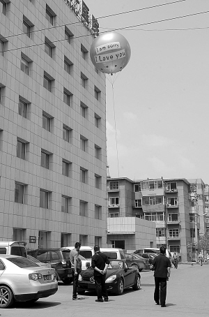 說到在車后拴“道歉氣球”的做法,小伙子說,小峰和女友吵架了,還把女友給打了,小峰對此非常后悔,就想到用這個辦法向女友道歉。因為女友生病了,在旁邊的這家醫院打針,小峰就買了個氣球拴在車后,高度正好到女友打針的病房窗口處,他還買了101朵白玫瑰,來看望女友,希望取得女友的原諒。