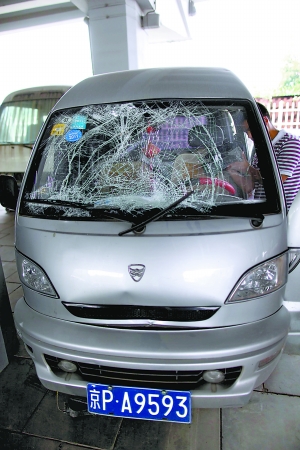 肇事“小面”前臉變形,前擋風玻璃裂成“蜘蛛網”。