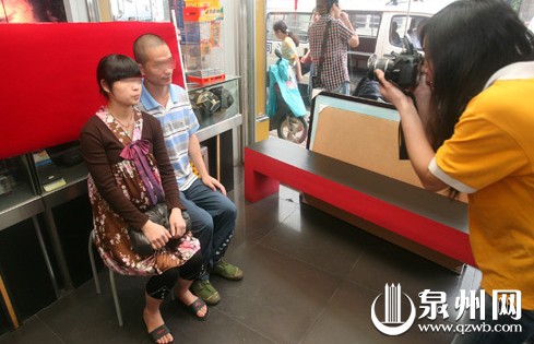 照相館拉開一塊紅布,阿鑫和阿晴并排坐在一起,目對鏡頭,表情有點緊張!耙、二、三。”幾番調試,攝影師拍下了一張滿意的照片。
