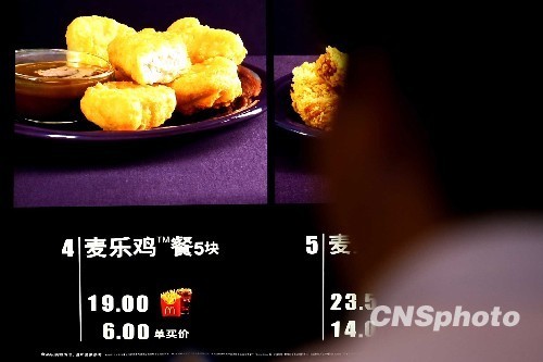 7月7日,一名顧客在麥當勞北京一門店選購麥樂雞。近日,世界知名快餐品牌麥當勞再次遭遇食品安全質疑。有外國媒體報道,在美國麥當勞出售的麥樂雞,含有泥膠和石油成分的化學物質。對此,麥當勞中國有限公司發出聲明稱,在中國麥當勞售賣的麥樂雞中聚二甲基硅氧烷、特丁基對苯二酚兩種物質的含量完全符合現行國家食品添加劑使用衛生標準,對消費者的健康無害。 中新社發 富田 攝