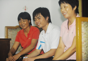 得知自己被錄取后,李斌和媽媽(左)還有鄰居(右)終于舒心得笑了。吳俊 攝