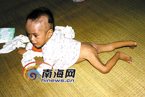 近日,網(wǎng)絡上流傳一個讓人震驚的帖子,稱海口市新坡鎮(zhèn)保禮村一母親不知是何原因,拋棄3歲女兒和8個月大的兒子離家出走,造成兒子小其清8天沒人細心照顧。當孩子的父親回家看到兒子躺在屎尿中不停哭泣時,小其清被餓成了皮包骨,而且上吐下瀉,還發(fā)著高燒。