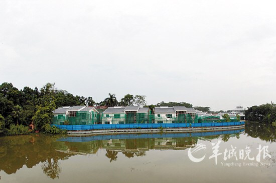 據廣州市民熊先生稱,本月27日,他和家人到中科院華南植物園游玩,行至園內琪林酒家前路段時,驚訝地發現,馬路對面一個人工湖沿岸,有一排漂亮的在建別墅。