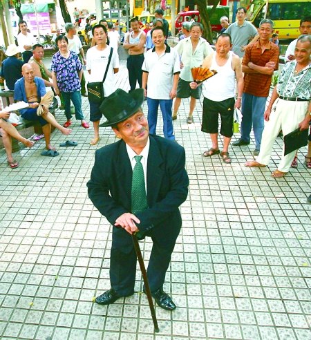 退休工街頭扮卓別林逗市民開心(圖)