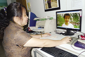 俞女士在看兒子小陳的照片。鄭幼明攝