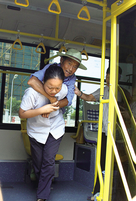 陳葉常常背行動不便的乘客上下車(圖片來源:寧波日報)