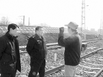 陶國華(中)在國家重點工程工地巡查、調(diào)研治安情況。