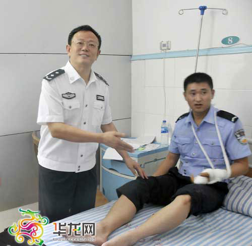 北碚區(qū)副區(qū)長(zhǎng)、區(qū)公安分局局長(zhǎng)馬小平到醫(yī)院看望受傷民警 陳遠(yuǎn)鴻 攝