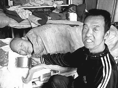 在與兄弟倆的交談中,記者了解到,12年前兄弟倆本有個(gè)幸福美滿的家庭,但這一切都因12年前弟弟出工傷事故而改變。1998年12月的某天,正在邢臺(tái)一煤礦下井工作的群堂因工傷造成高位截癱。“出事后,弟弟只有兩只胳膊能微微活動(dòng),手也不能拿東西了。他的生活完全需要人照顧。”