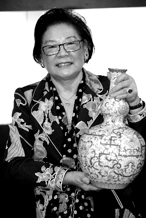 收藏家張永珍以2億5266萬港元拍得乾隆長頸葫蘆瓶。