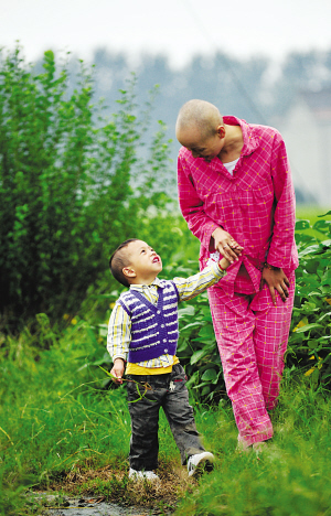“癌癥媽媽”和兒子在一起。(資料圖片)