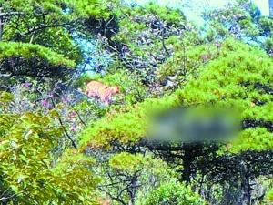 10月15日,安徽籍游客鮑曙光一行在西海岸一側(cè)100多米的山林陡坡上發(fā)現(xiàn)一只金黃色動(dòng)物的蹤影。