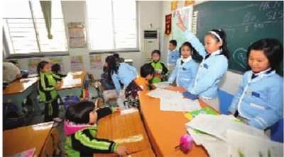“少兒政府”的副市長(zhǎng)和兩位局長(zhǎng)在教室里檢查紀(jì)律。記者 田超 實(shí)習(xí)生 陳杰 攝