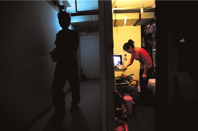 22歲的小石在木樨園附近的百榮世貿商城做導購員,未婚夫小郭是運輸公司的司機,兩人住在商城兩公里外一小區的一間地下室。雖然是一個僅有8平方米、不帶廚衛的“開間”,但月租才450元,離工作地點不遠,對付一下,家的功能還算完整。