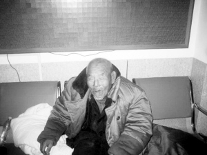 值班副站長何平告訴記者:“老人耳朵聾得厲害,拄著拐杖,背著一條褥子和一件棉大衣,應該是流浪很多年了。”