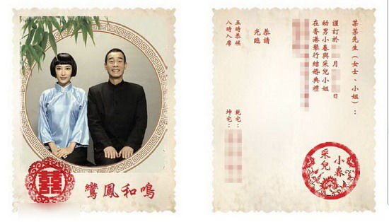 資料圖片:陳小春和應(yīng)采兒的結(jié)婚請柬 注:文圖無關(guān)